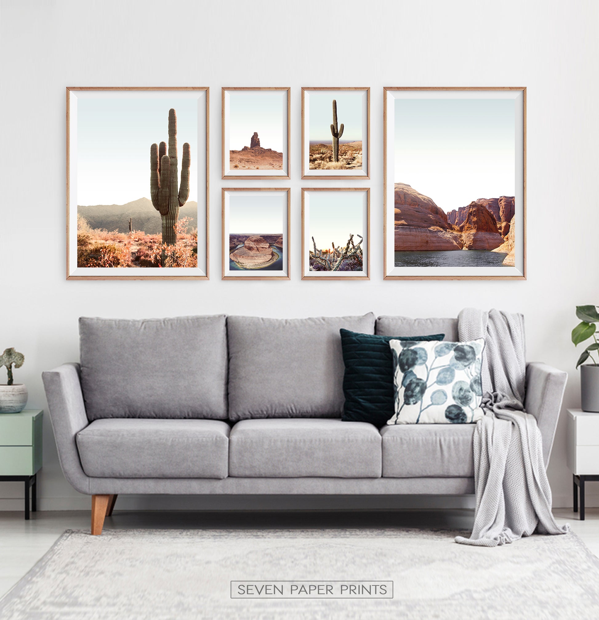 See the striking collection of Arizona desert landscape prints in a 6 piece wall art set. Each print has a unique story to describe. Explore exciting views of National Park, Lake Powell, Monument Valley, Horseshoe Bend, Antelope Canyon. This is must-have wall decor with cacti for getting an outstanding appearance.