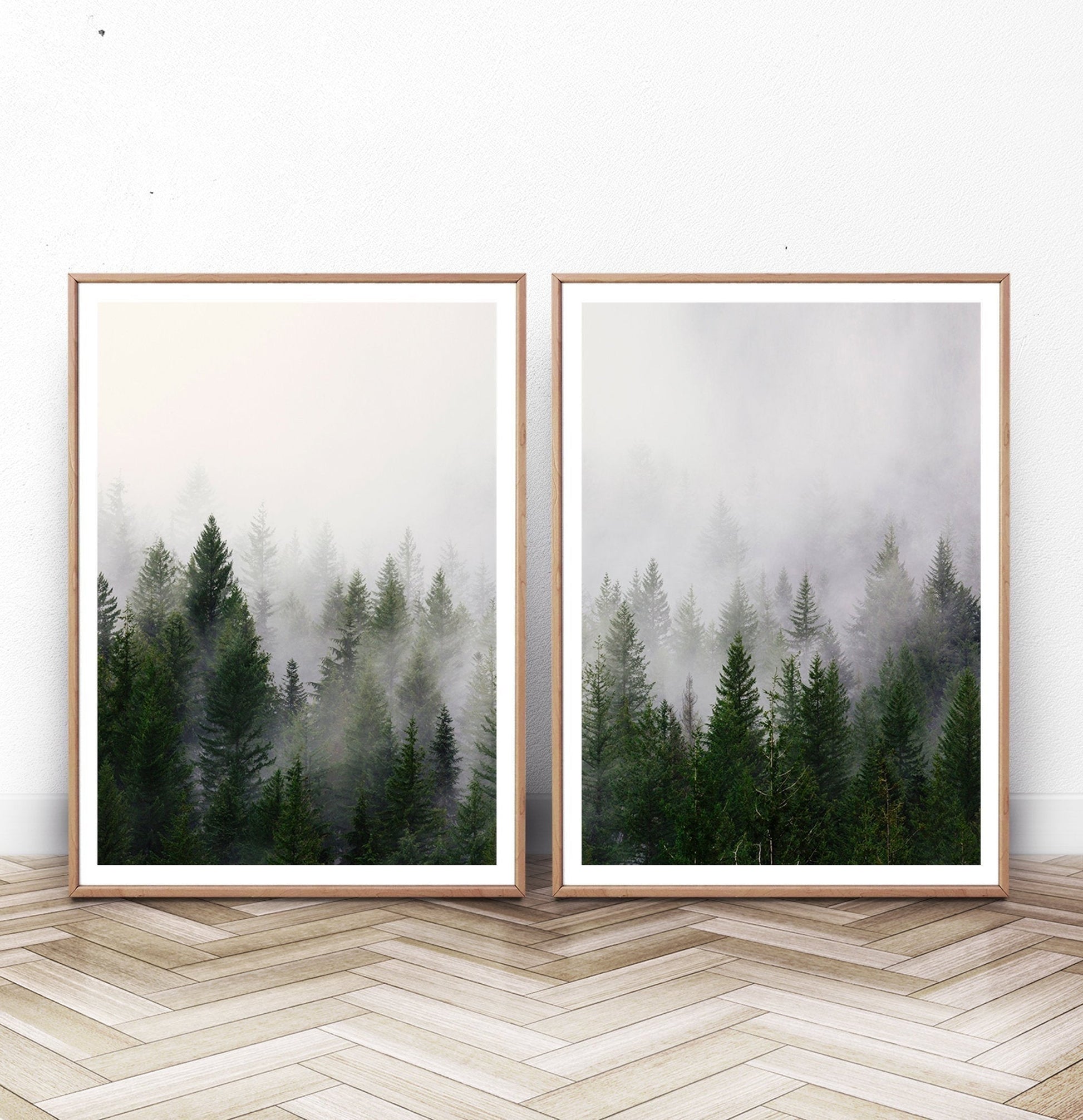 Lush green forest full of misty pine trees give an impressive view. Two piece wall art set brings a lot of happiness to empty walls of the living room, lobby, and bedroom. Green leaves of towering pine trees urge you to set high aims in life and work hard to achieve them.