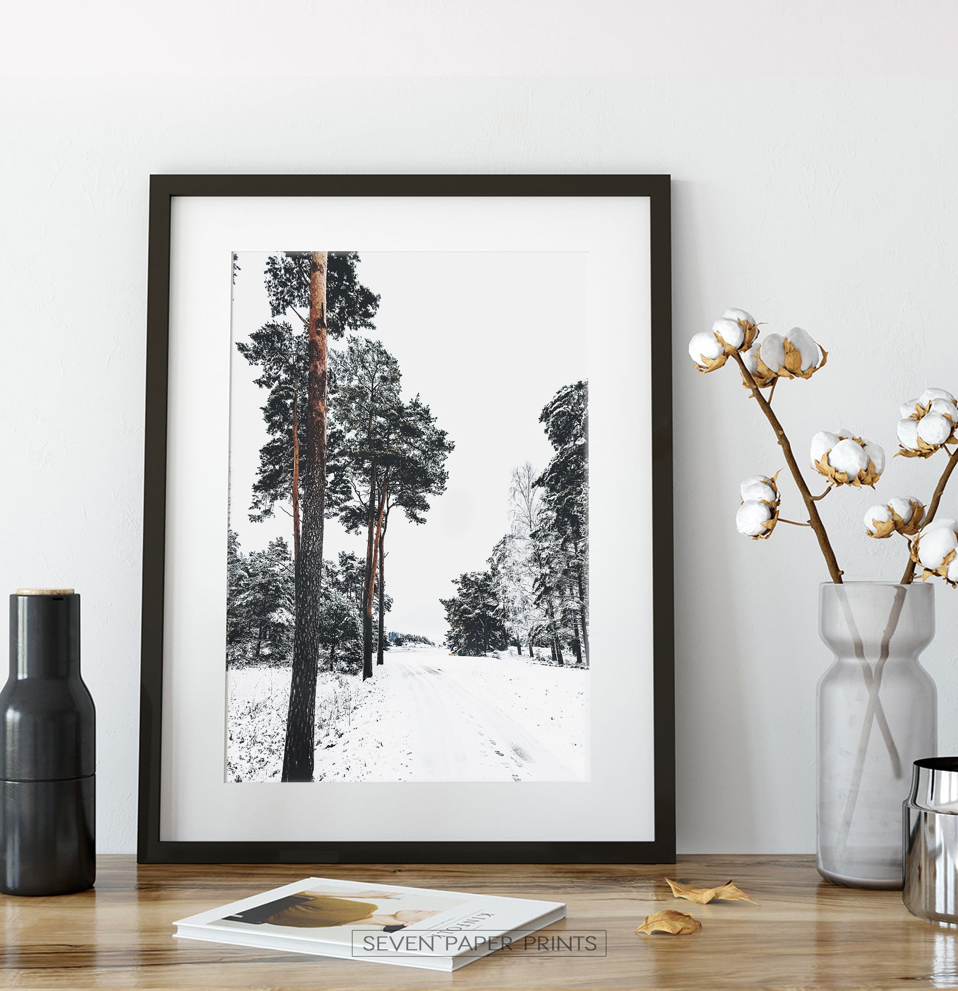 Eye-pleasing pine woods road, covered in snow, so white, wintery, and romantic. Do yourself a present and hang this beauty in your room - you'll be much happier with this calming and wonderful landscape.